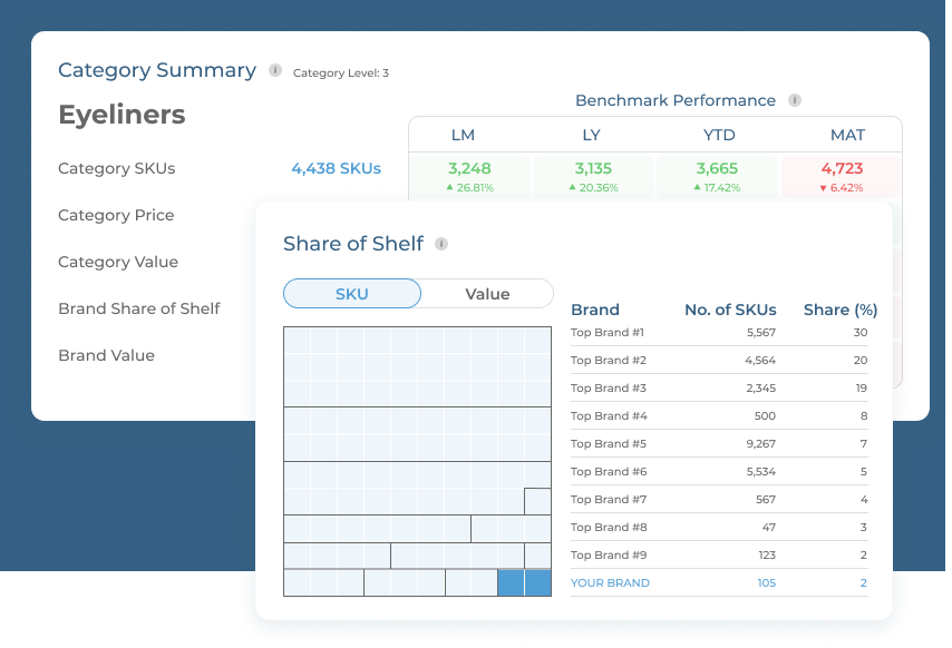 At the core of Market Insights are advanced AI and insights engines creating intuitive dashboards, designed to provide a centralized view of your category performance giving you actionable insights and a real competitive advantage.